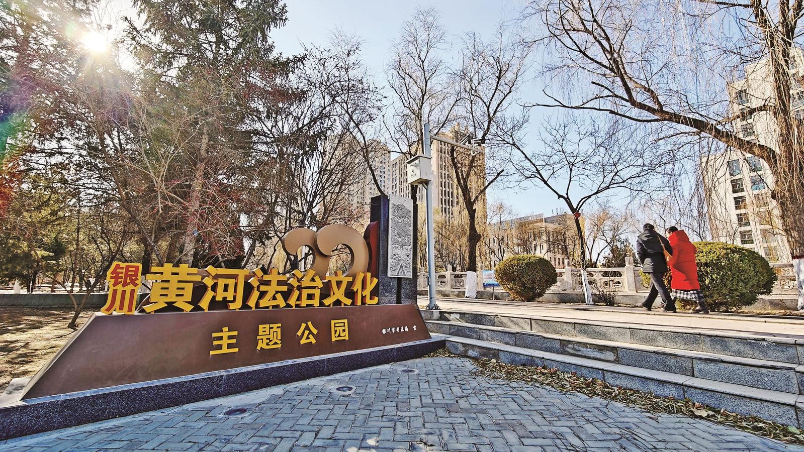 沿着唐徕渠滨水廊道漫步,法治主题公园、文化小亭、互动体验区与千年灌渠文化交相辉映。这块3公里长的“黄河法治文化带”已成为银川法治文化建设的地标性景观。“周末带孩子来玩,既能欣赏自然风光,又能学习法律知识,一举两得。”市民刘先生指着渠畔的法治宣传牌说。