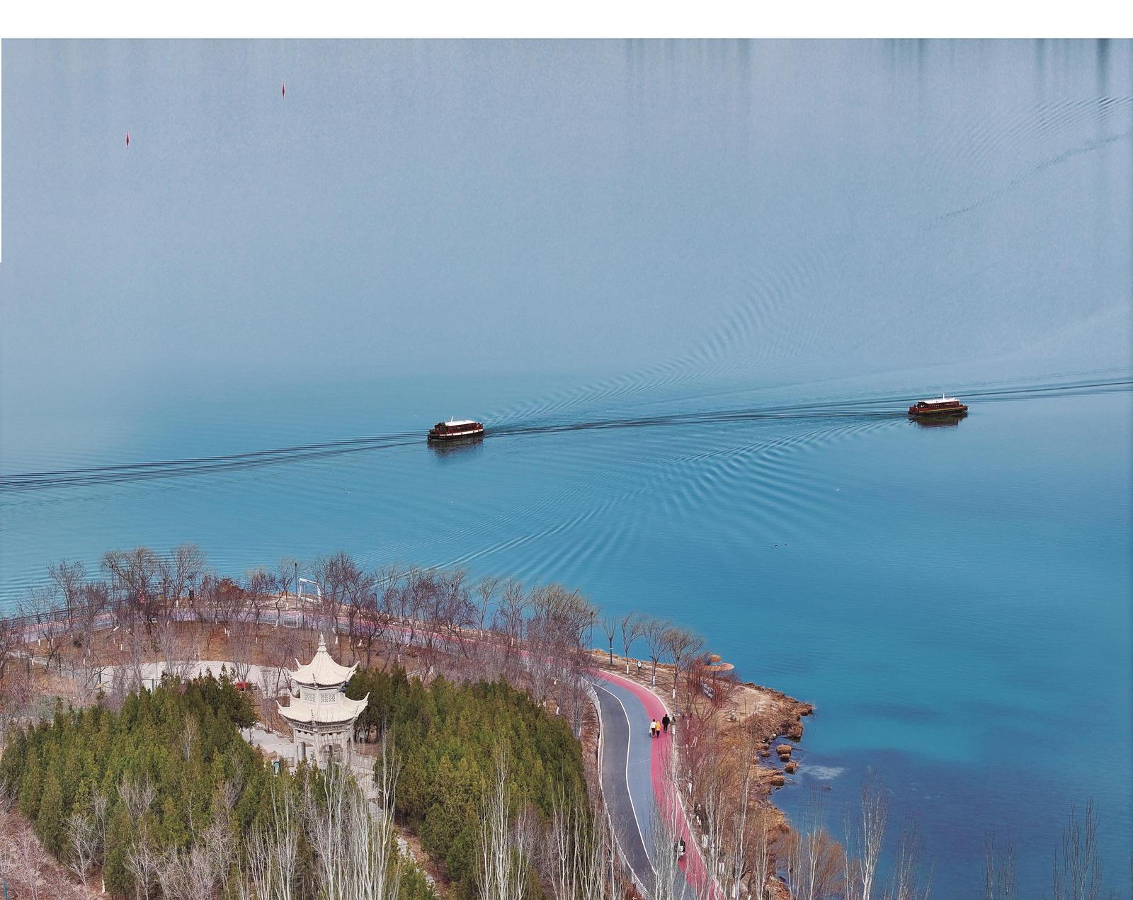 天气渐暖,阅海国家湿地公园冰雪消融,湖水澄澈