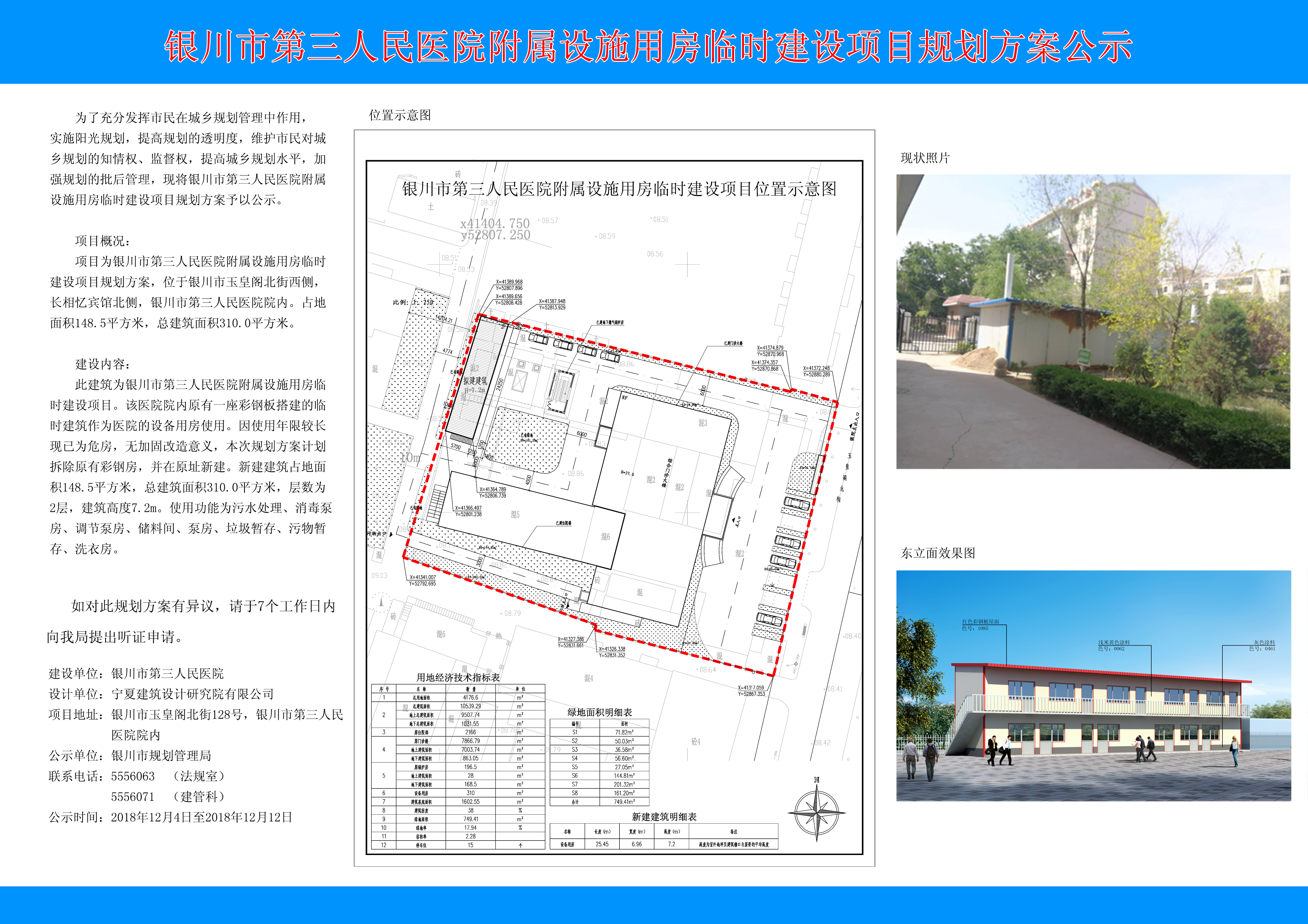 银川市第三人民医院附属设施用房临时建设项目规划方案公示