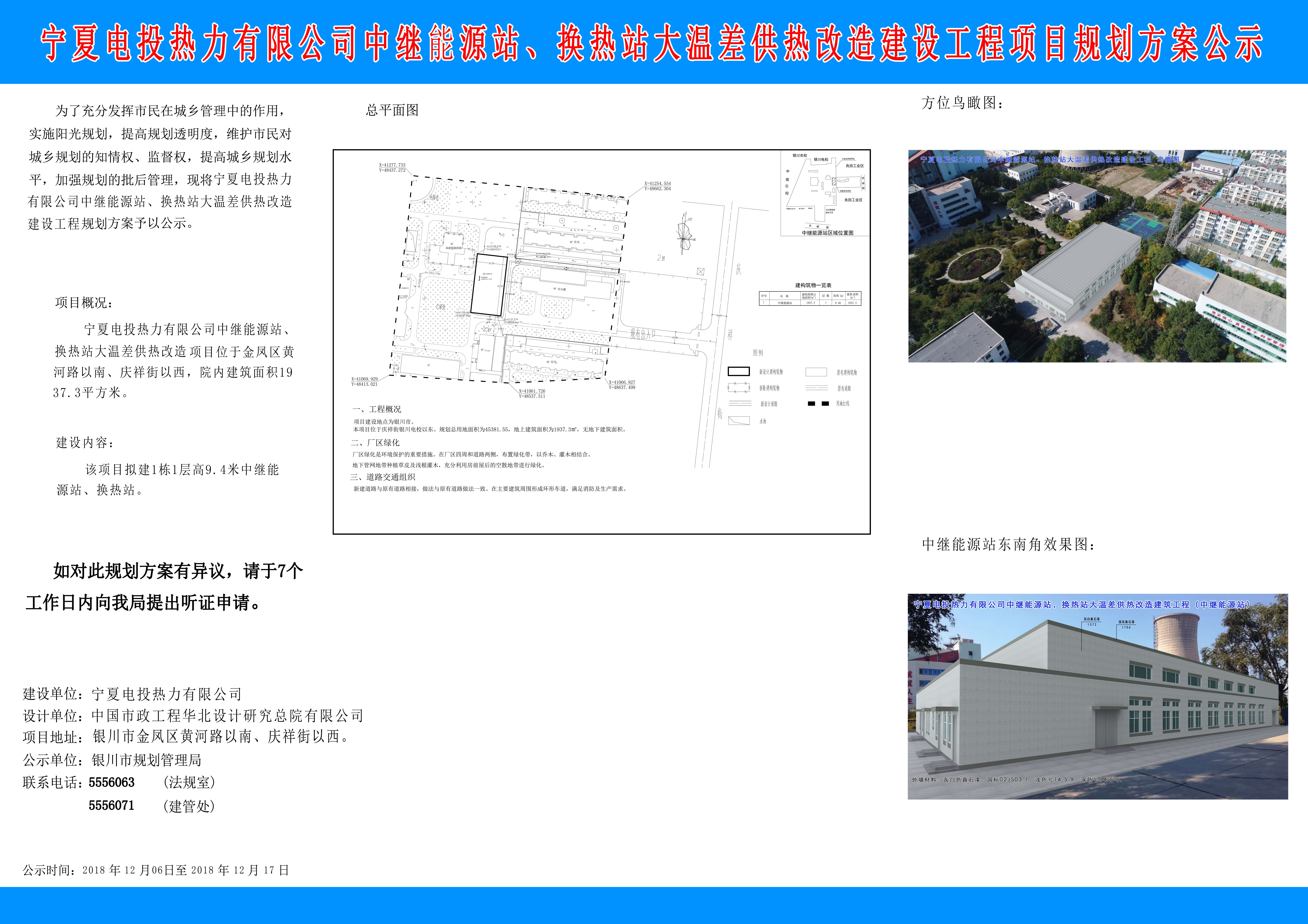 宁夏电投热力有限公司中继能源站、换热站大温差供热改造建设工程项目规划方案公示