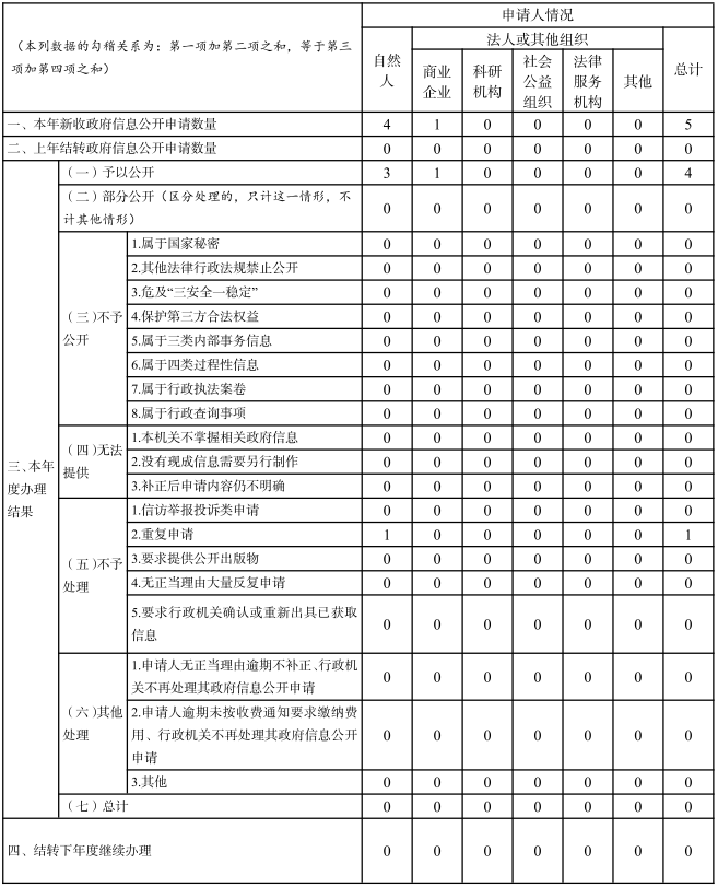 三、收到和处理政府信息公开申请情况