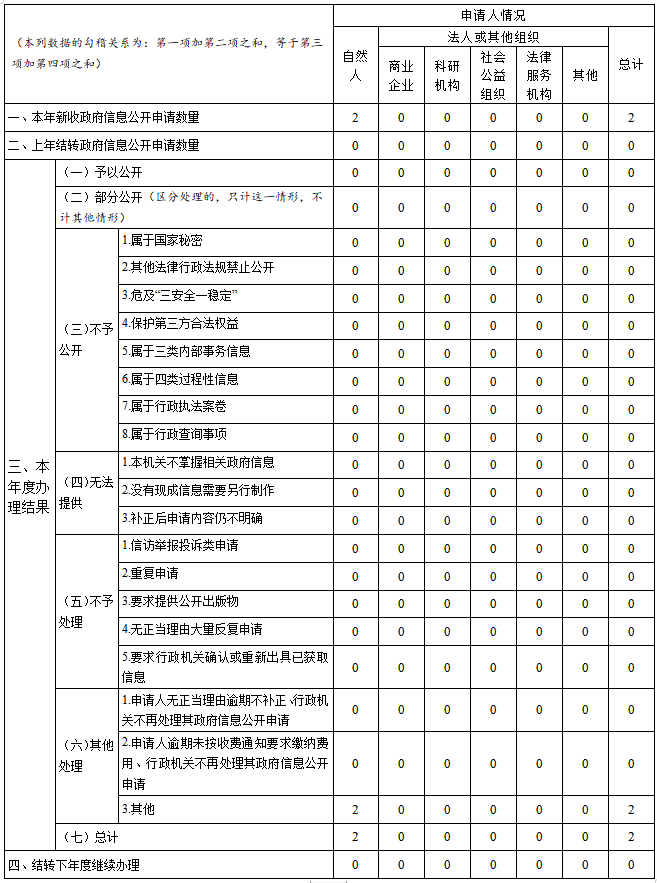 银川市退役军人事务局2024年未收到政府信息公开申请,未收取信息处理费。本报告电子版可在“银川市人民政府门户网站”查阅下载,更多政府信息可登录网站https://www.yinchuan.gov.cn/查阅。
